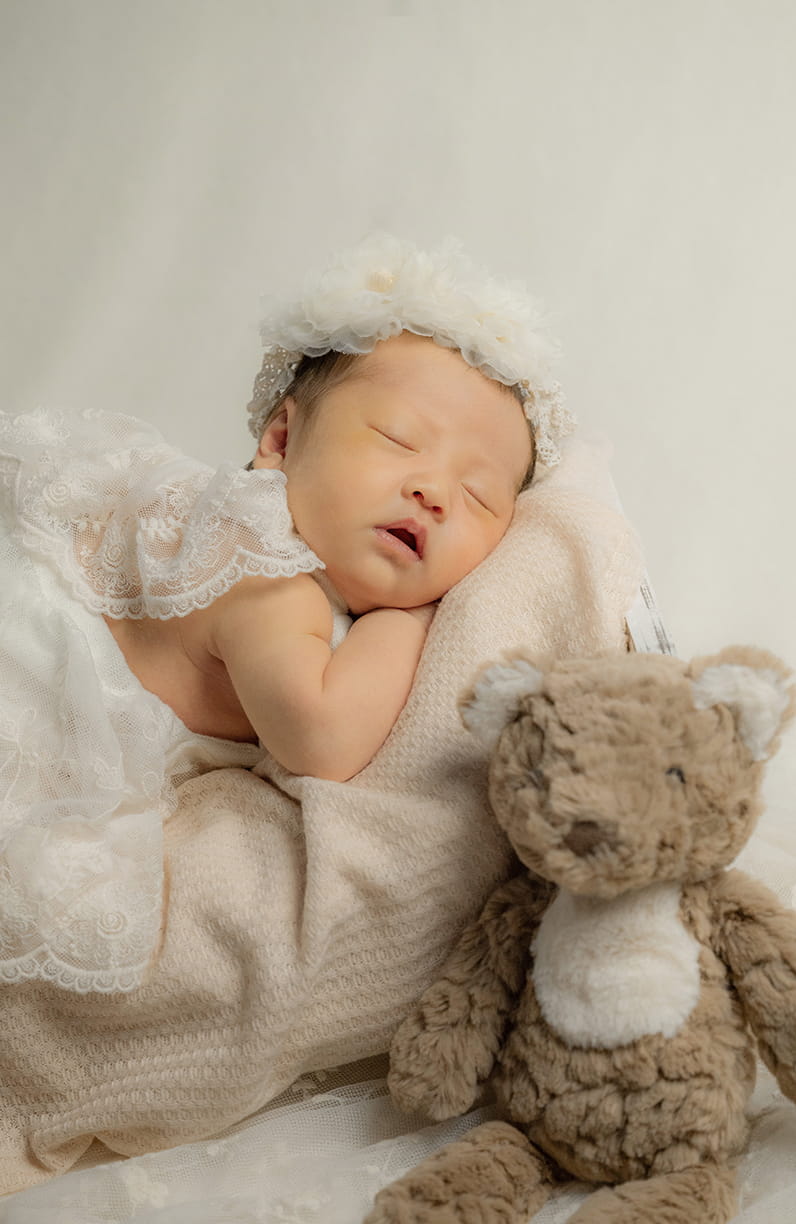 生後2〜3週間頃の新生児の記念写真です生まれたばかりの神秘的な一瞬を撮影いたします 約10カット データお渡し (撮影料、青森市内ご自宅出張料込み) ¥35,200(税込) ルーチェのスタジオでの撮影も可能です アルバムやお家に飾れるアイテムのオプションもございます 赤ちゃんのご機嫌に合わせて2,3パターン撮影していきますので、所要時間は約1〜2時間ほど 新生児用のお衣装もご用意しております その他、ご不明な点お気軽にご相談ください